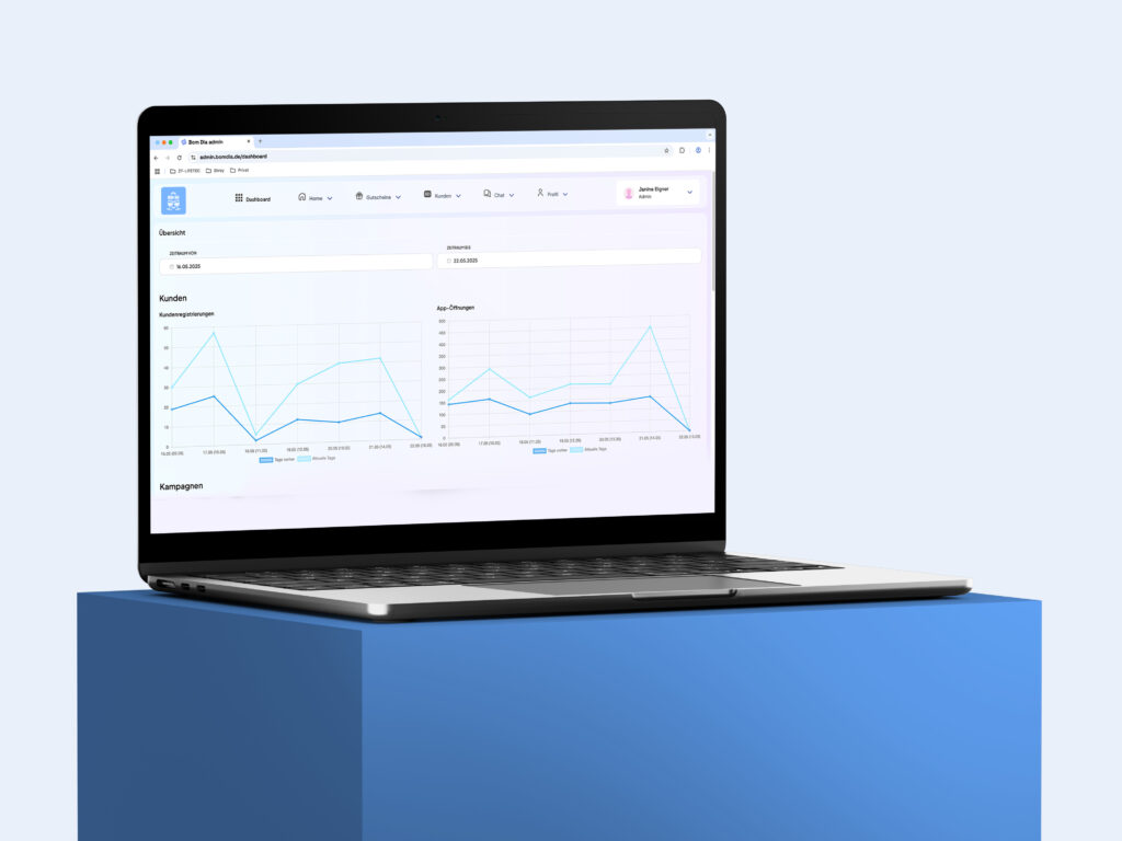 Mit kundio bringen Sie Ihre Kundenbindung auf ein neues Level: Erstellen Sie individuelle Gutscheine und Aktionen, versenden Sie gezielte Push-Notifications und analysieren Sie das Kaufverhalten in Echtzeit – alles bequem über das intuitive Backend. Sparen Sie sich teure Mailings und setzen Sie auf direkte, digitale Kommunikation.